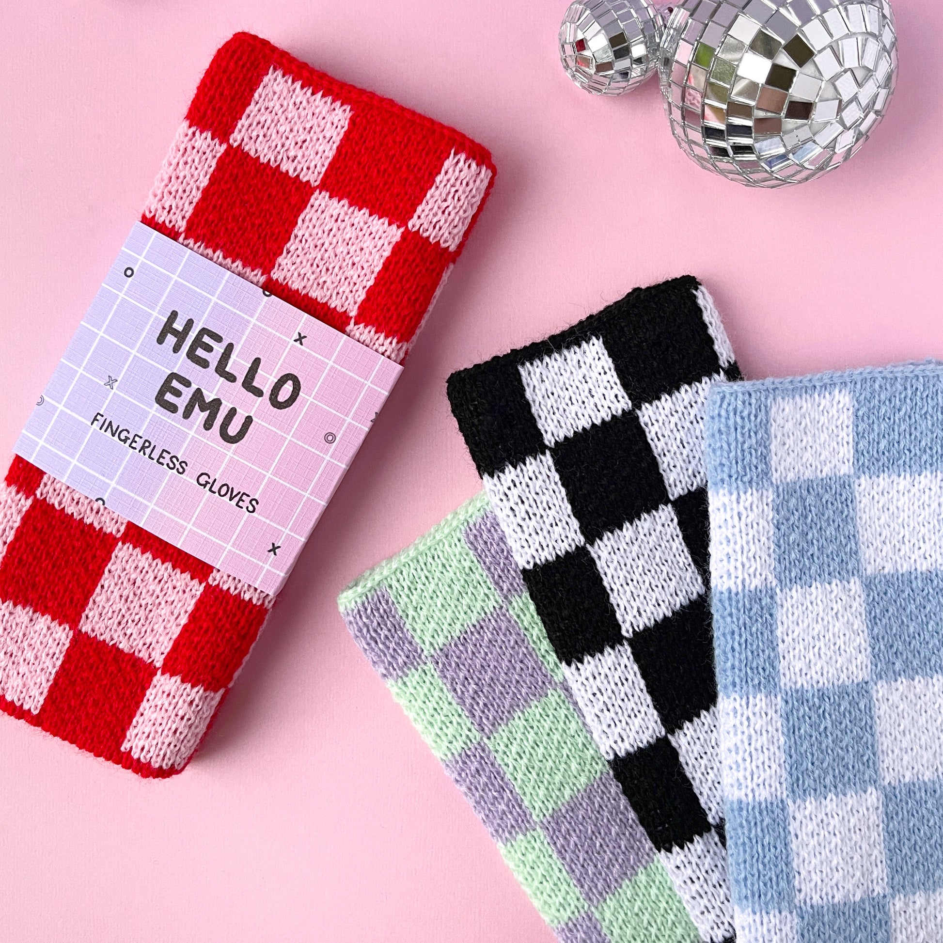 Our checkerboard print fingerless gloves are simply perfect for everyone who loves keeping their wrists warm whilst staying stunning! A thumb hole keeps them all snug and in place whilst allowing you to do anything you want with your full finger mobility, mittens who?! Designed by Emu herself and machine knitted in our studio, each pair is made to order so will be lovingly created just for you!