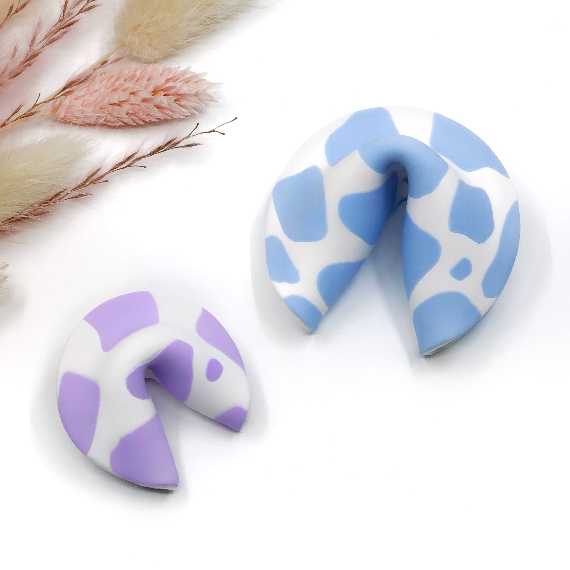 Polymer clay reusable fortune cookie sculpture with a pretty moo-velous cow print!
