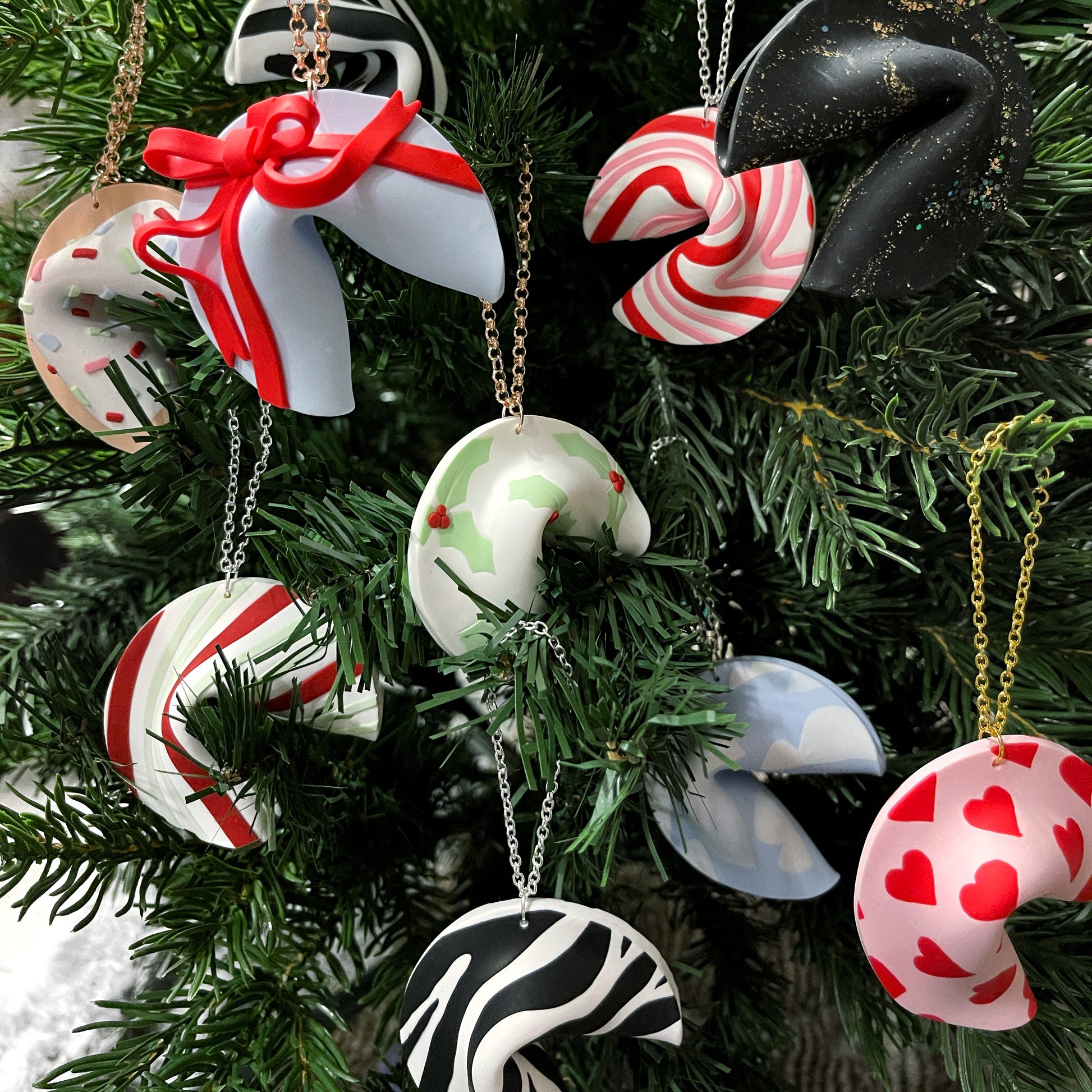 Fortune Cookies for your trees this Christmas! Choose any design you would like, hung on metal chains to give that extra sparkle and each one with a seasonal fortune inside!