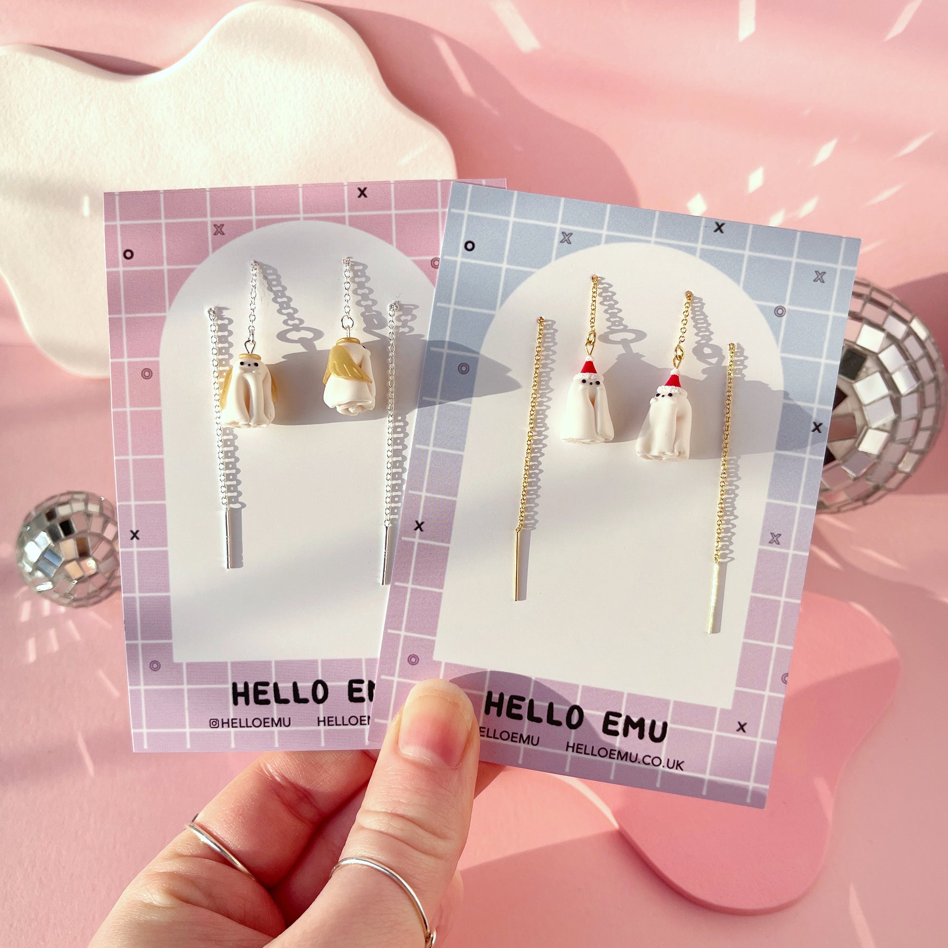 Lightweight polymer clay ghosts in the style of your choice sit on a pair of threader chains. Perfect for you ghouls, perfect for Halloween and perfect for autumn/fall! Not only are they one of our in-person and online bestsellers, they're 3D, lightweight and definitely make a statement. Either choose a matching pair or two singles for a mismatched look!