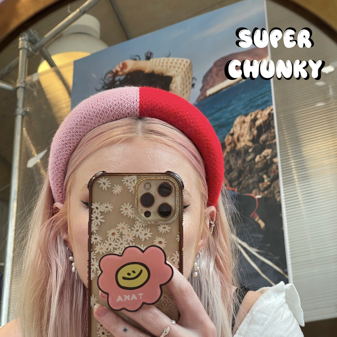 Our half and half hairbands are simply perfect for everyone who loves looking cute and staying stylish, made in 2 different chunkiness levels to suit every noggin! We suggest the chunky size for an every day look and the super chunky size for more of a halo, Anne Boleyn, statement moment (or if you have a lot of hair).