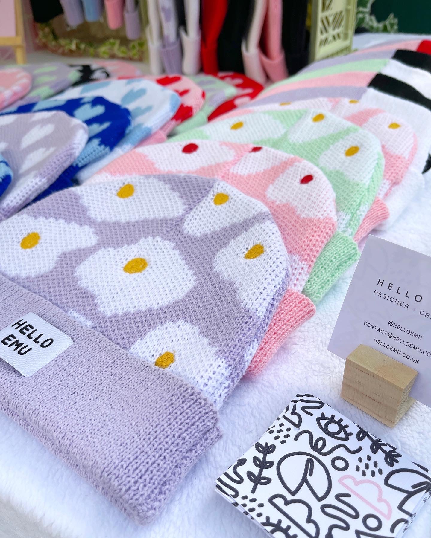 Our egg print beanie hats are simply perfect for everyone who loves keeping their heads warm whilst looking scrumptious yet quirky. Designed by Emu herself and machine knitted in our studio. Each one is made to order so will be lovingly created just for you!