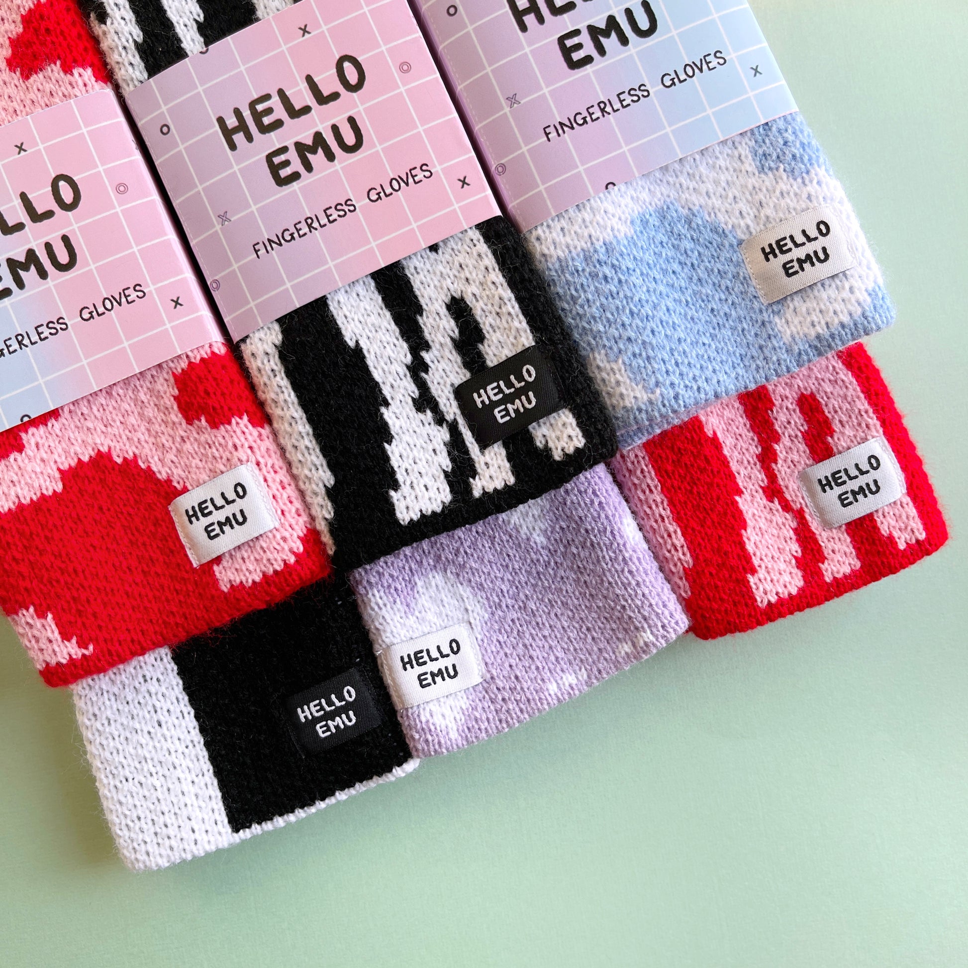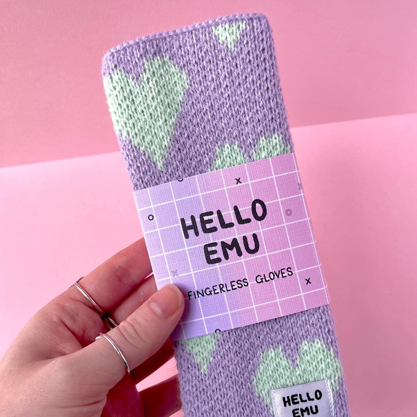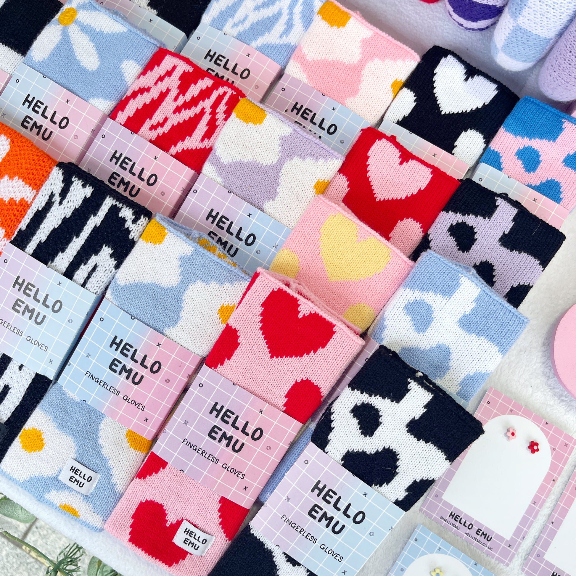 Our heart print fingerless gloves are simply perfect for everyone who loves keeping their wrists warm whilst staying stylish! A thumb hole keeps them all snug and in place whilst allowing you to do anything you want with your full finger mobility, mittens who?! Designed by Emu herself and machine knitted in our studio, each pair is made to order so will be lovingly created just for you!