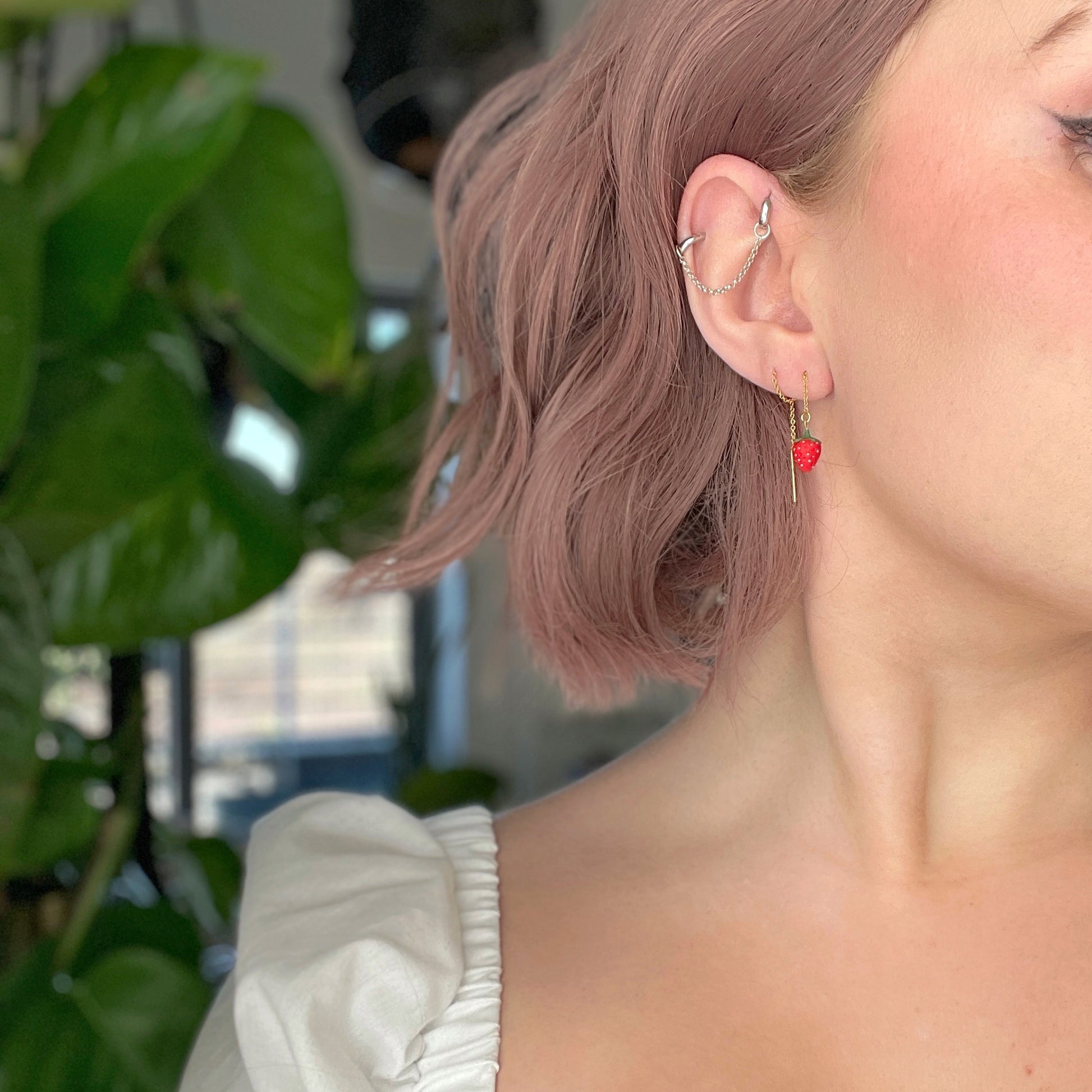 These strawberries just want to be the cutest (and smallest) fruits in the basket, perfect for you fairy ghouls who love colour, cuteness and romance! Choose between gold or silver metal, and if you'd like to mix and match with another style choose a single earring!