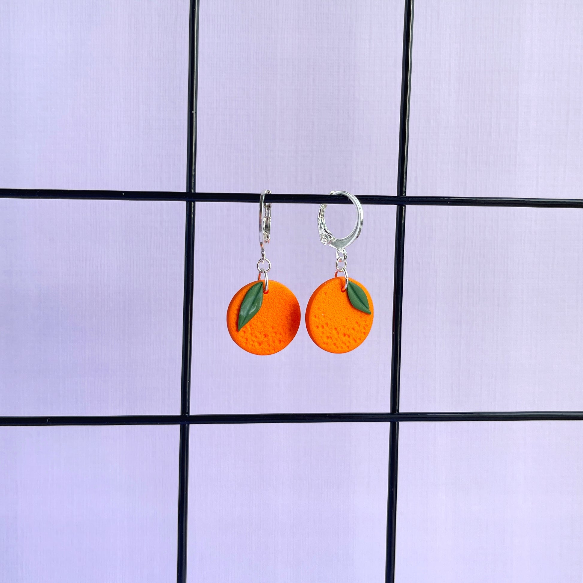 One pair of the cutest orange earrings you've ever seen, perfect for holidays, picnics or matching with your favourite dress! These are both quirky and delicate with a slightly textured surface and a raised 3D leaf. Choose between either hoops or ball studs, and gold or silver depending on which kinda girly you are.